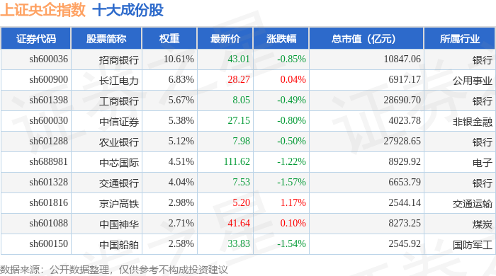 近10日内上证央企(000042)指数成份股做了调整,新纳入了2只股票,剔除了1只股票。