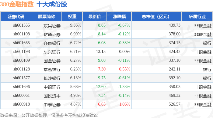证券之星消息,12月3日,380金融(000110)指数报收于4190.53点,跌0.29%,成交39.66亿元,换手率0.65%。当日该指数成份股中,上涨的有3家,江苏金租以1.27%的涨幅领涨,下跌的有16家,湘财股份以1.52%的跌幅领跌。