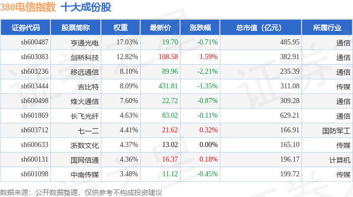 380电信(000112)指数十大成份股详情如下: