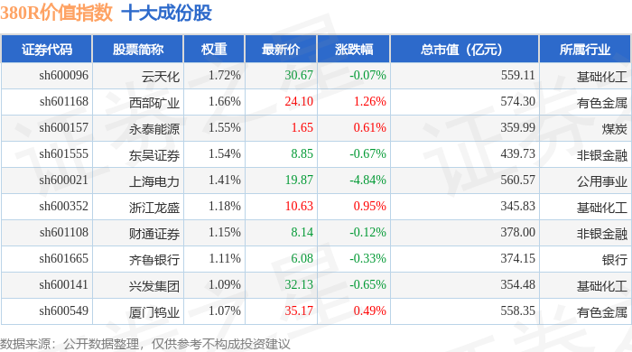 380R价值(000120)指数十大成份股详情如下: