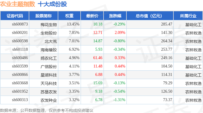 证券之星消息,12月3日,农业主题(000122)指数报收于1605.56点,涨0.1%,成交51.65亿元,换手率2.46%。当日该指数成份股中,上涨的有12家,好当家以10.19%的涨幅领涨,下跌的有19家,红四方以1.79%的跌幅领跌。