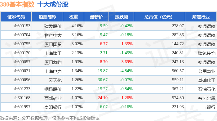 证券之星消息,12月3日,380基本(000128)指数报收于8847.43点,跌0.14%,成交1143.05亿元,换手率1.2%。当日该指数成份股中,上涨的有135家,福蓉科技以10.01%的涨幅领涨,下跌的有237家,莱斯信息以9.85%的跌幅领跌。