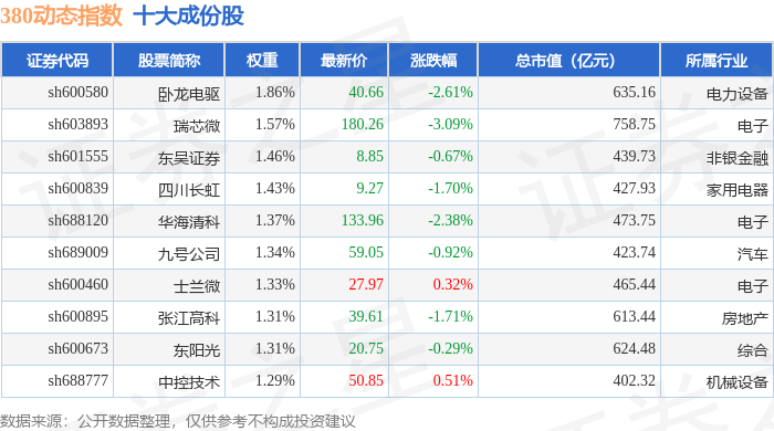 380动态(000141)指数十大成份股详情如下: