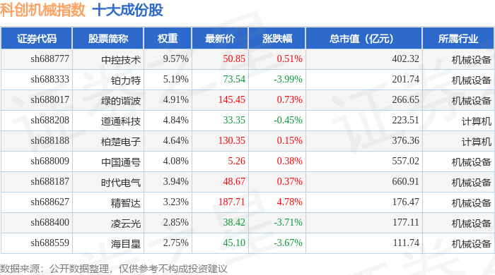 近10日内科创机械(000693)指数成份股做了调整,新纳入了2只股票,剔除了2只股票。