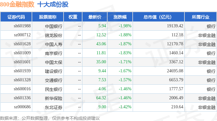 800金融(000974)指数十大成份股详情如下: