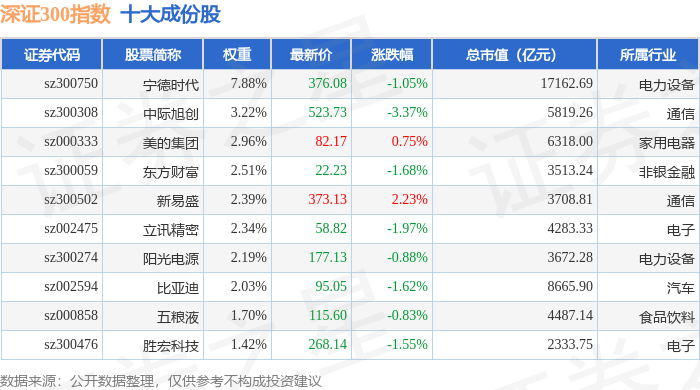 深证300(399007)指数十大成份股详情如下: