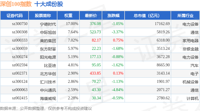 证券之星消息,12月3日,深创100(399088)指数报收于4827.54点,跌1.08%,成交1222.7亿元,换手率1.9%。当日该指数成份股中,上涨的有21家,杰瑞股份以10.0%的涨幅领涨,下跌的有79家,广和通以7.09%的跌幅领跌。