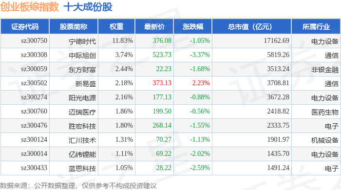 证券之星消息,12月3日,创业板综(399102)指数报收于3741.18点,跌1.28%,成交4662.97亿元,换手率3.8%。当日该指数成份股中,上涨的有253家,四方达以15.37%的涨幅领涨,下跌的有1079家,赛微电子以19.56%的跌幅领跌。