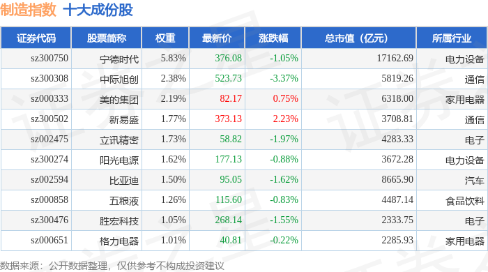 近10日内制造指数(399233)成份股做了调整,剔除了1只股票。