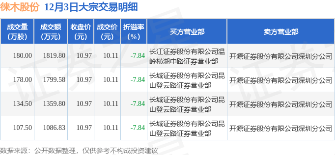 证券之星消息,12月3日徕木股份发生大宗交易,交易数据如下: