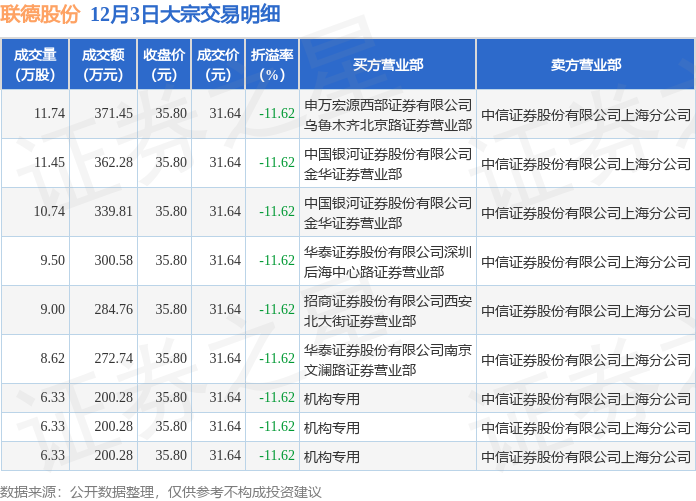 证券之星消息,12月3日联德股份发生大宗交易,交易数据如下: