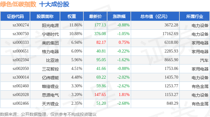 资金流向方面,绿色低碳(399258)指数成份股当日主力资金净流出合计44.05亿元,游资资金净流入合计6.11亿元,散户资金净流入合计37.94亿元。成份股资金流向详情见下表: