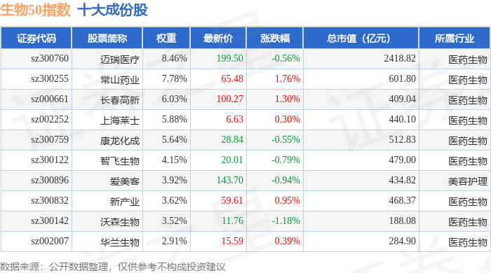 近10日内生物50(399280)指数成份股做了调整,新纳入了2只股票,剔除了2只股票。