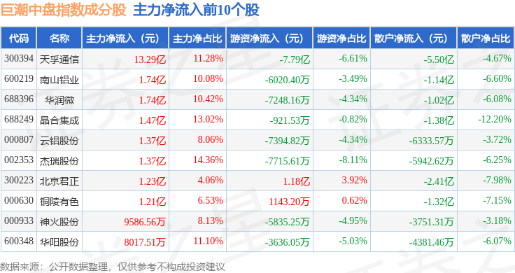 资金流向方面,巨潮中盘(399315)指数成份股当日主力资金净流出合计77.39亿元,游资资金净流入合计1.42亿元,散户资金净流入合计75.97亿元。成份股资金流向详情见下表: