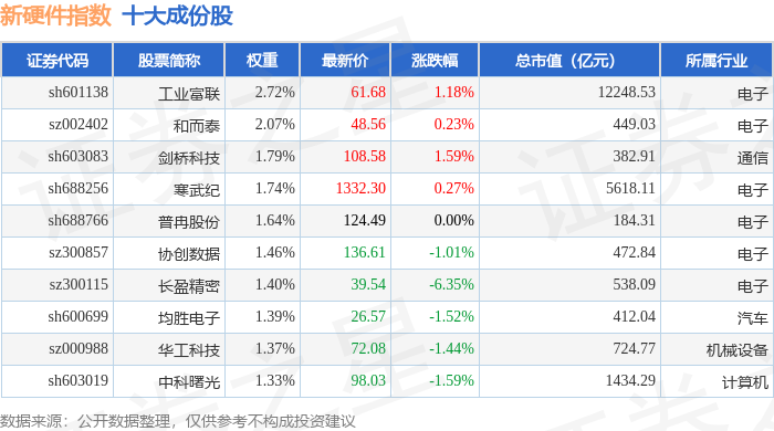 近10日内新硬件(399360)指数成份股做了调整,新纳入了2只股票。