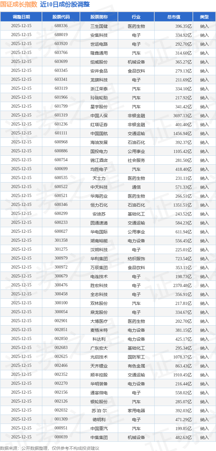 近10日内国证成长(399370)指数成份股做了调整,新纳入了47只股票。