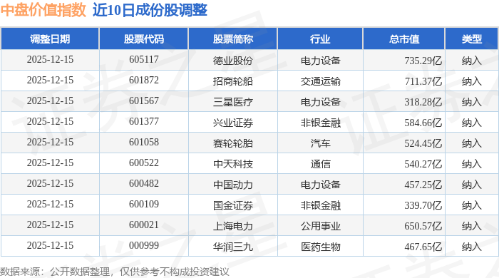 近10日内中盘价值(399375)指数成份股做了调整,新纳入了10只股票。