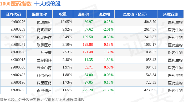近10日内1000医药(399386)指数成份股做了调整,新纳入了3只股票。