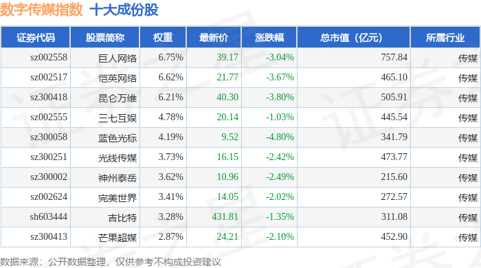 近10日内数字传媒(399434)指数成份股做了调整,新纳入了1只股票。