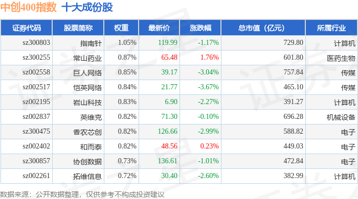 中创400(399624)指数十大成份股详情如下: