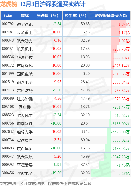 龙虎榜中有沪股通/深股通专用席位(北向资金)现身的个股共19家,其中通宇通讯以净买入1.87亿元排名第一。详情见下表:
