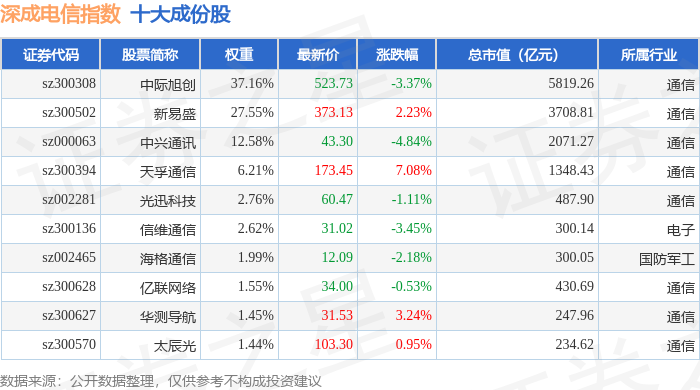 深成电信(399688)指数十大成份股详情如下:
