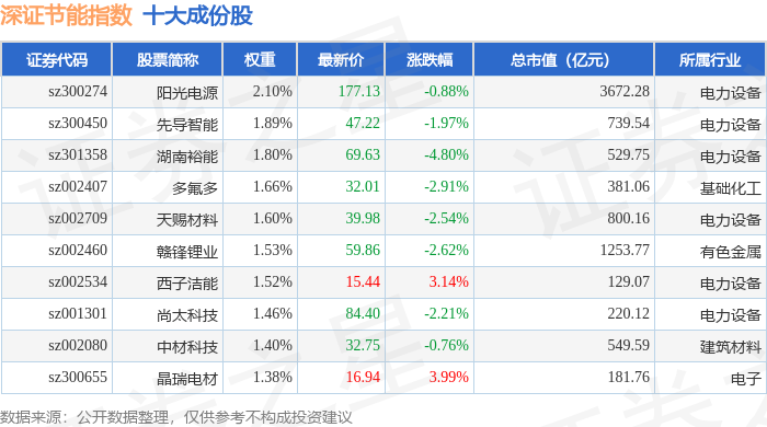证券之星消息,12月3日,深证节能(399695)指数报收于2806.16点,跌1.01%,成交819.76亿元,换手率1.63%。当日该指数成份股中,上涨的有21家,大金重工以10.0%的涨幅领涨,下跌的有76家,天华新能以5.04%的跌幅领跌。