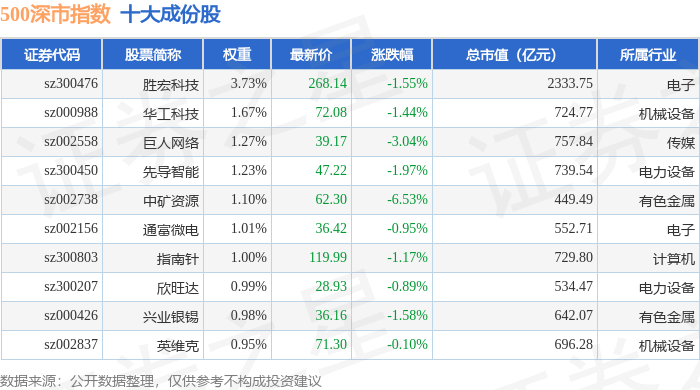证券之星消息,12月3日,500深市(399802)指数报收于6462.74点,跌0.71%,成交1435.44亿元,换手率1.67%。当日该指数成份股中,上涨的有73家,杰瑞股份以10.0%的涨幅领涨,下跌的有144家,中矿资源以6.53%的跌幅领跌。