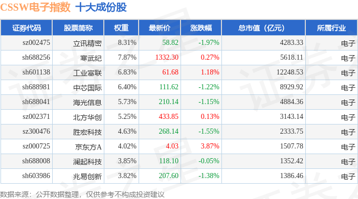CSSW电子(399811)指数十大成份股详情如下: