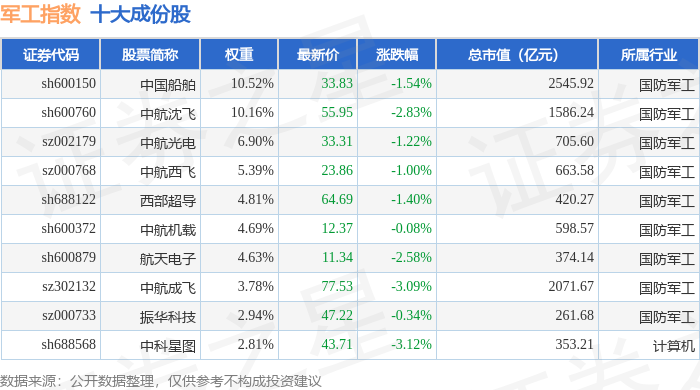 近10日内军工指数(399959)成份股做了调整,新纳入了4只股票,剔除了4只股票。