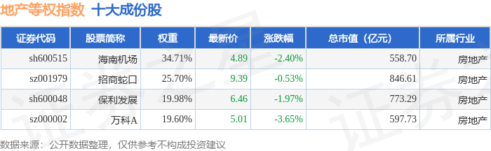 地产等权(399983)指数十大成份股详情如下: