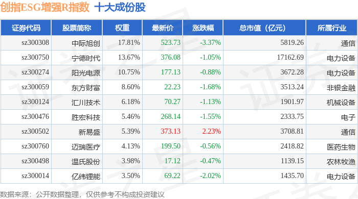 创指ESG增强R(470034)指数十大成份股详情如下:
