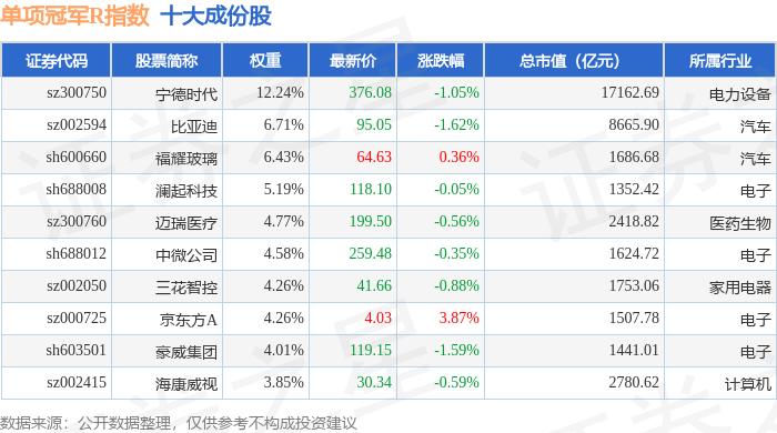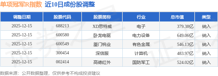 近10日内单项冠军R(480150)指数成份股做了调整,新纳入了5只股票。