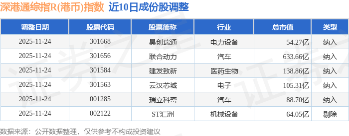 近10日内深港通综指R(港币)(483006)指数成份股做了调整,新纳入了5只股票,剔除了1只股票。