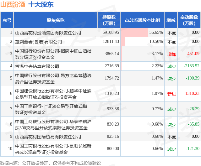 根据山西汾酒2025年三季报公布的十大股东详情如下: