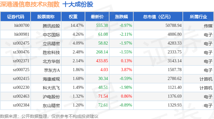 深港通信息技术R(483027)指数十大成份股详情如下: