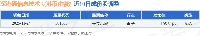 近10日内深港通信息技术R(港币)(483028)指数成份股做了调整,新纳入了1只股票。
