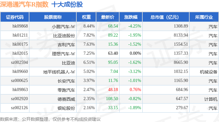 近10日内深港通汽车R(483039)指数成份股做了调整,新纳入了1只股票。