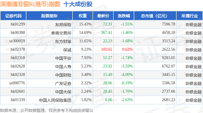 深港通非银R(港币)(483054)指数十大成份股详情如下: