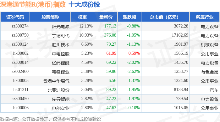 深港通节能R(港币)(483086)指数十大成份股详情如下: