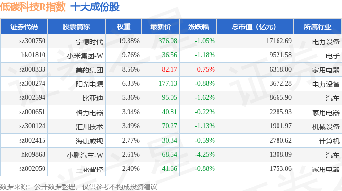 资金流向方面,低碳科技R(483160)指数成份股当日主力资金净流出合计42.67亿元,游资资金净流入合计3.56亿元,散户资金净流入合计39.11亿元。成份股资金流向详情见下表: