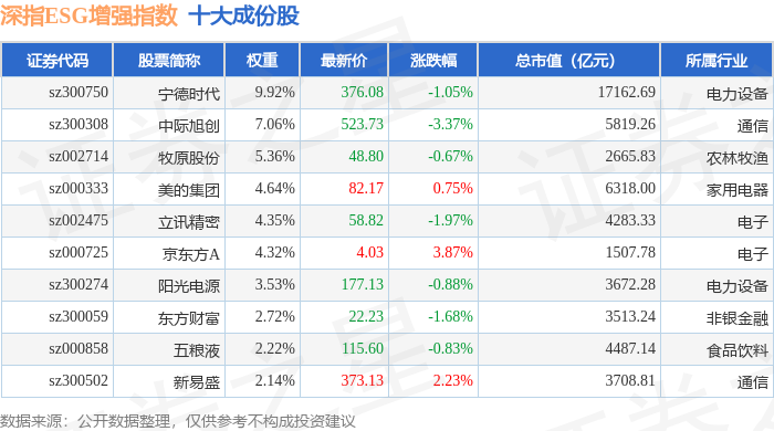 深指ESG增强(970032)指数十大成份股详情如下: