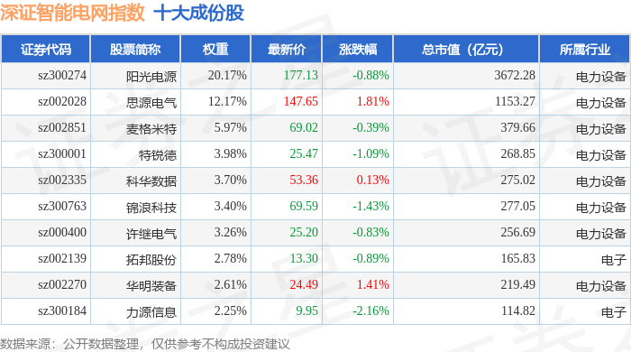 证券之星消息,12月3日,深证智能电网(970054)指数报收于3787.42点,跌0.27%,成交228.12亿元,换手率2.56%。当日该指数成份股中,上涨的有12家,新雷能以5.95%的涨幅领涨,下跌的有37家,华自科技以4.48%的跌幅领跌。