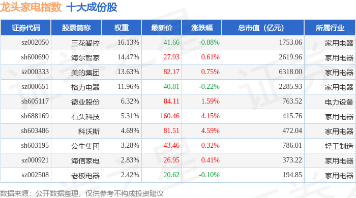 近10日内龙头家电(980028)指数成份股做了调整,新纳入了3只股票。