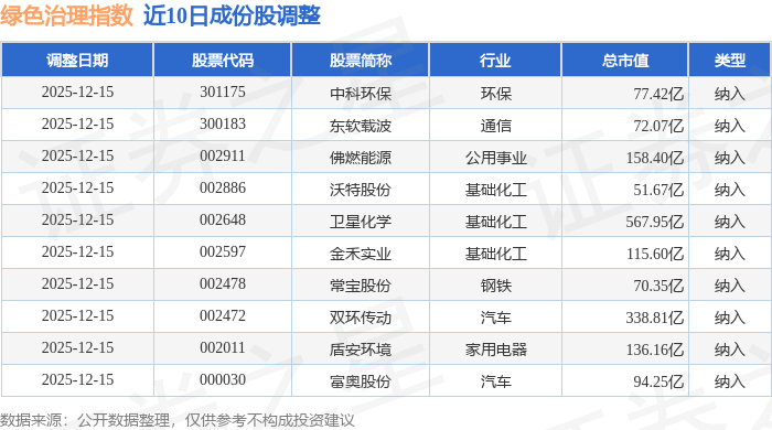 近10日内绿色治理(980058)指数成份股做了调整,新纳入了10只股票。