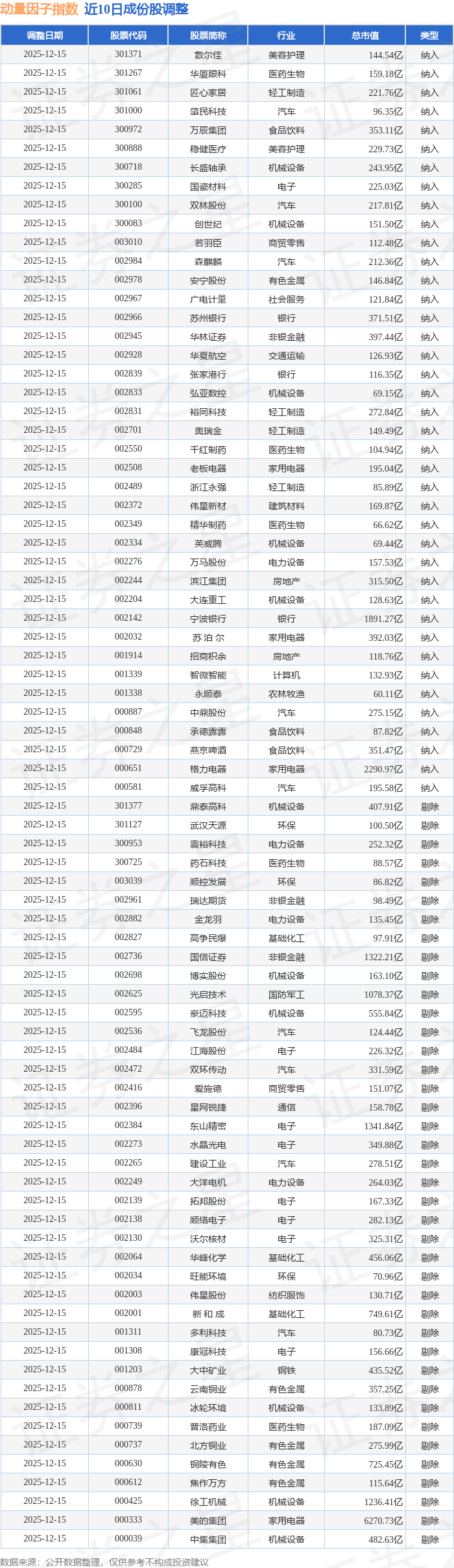 近10日内动量因子(980057)指数成份股做了调整,新纳入了40只股票,剔除了40只股票。