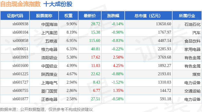 资金流向方面,自由现金流(980092)指数成份股当日主力资金净流出合计4.78亿元,游资资金净流出合计3223.55万元,散户资金净流入合计5.1亿元。成份股资金流向详情见下表: