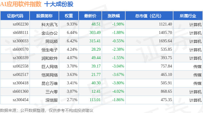近10日内AI应用软件(980107)指数成份股做了调整,新纳入了3只股票,剔除了3只股票。