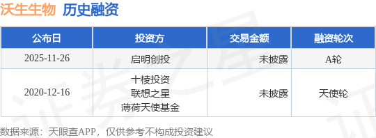 证券之星消息,根据天眼查APP于11月26日公布的信息整理,苏州沃生生物医药有限公司A轮融资,融资额未披露,参与投资的机构包括启明创投。