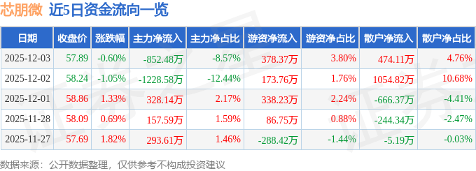 12月3日的资金流向数据方面,主力资金净流出852.48万元,占总成交额8.57%,游资资金净流入378.37万元,占总成交额3.8%,散户资金净流入474.11万元,占总成交额4.76%。